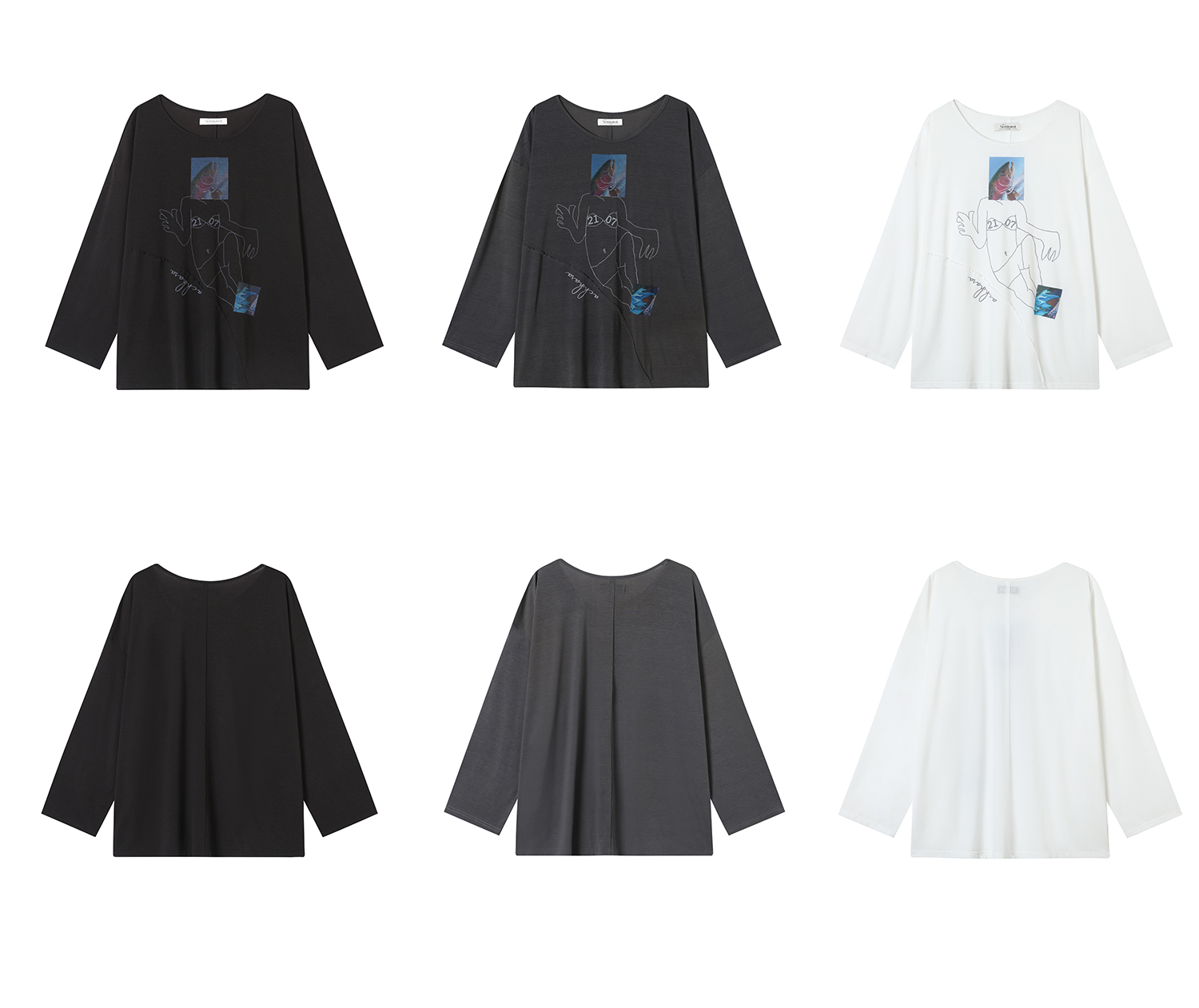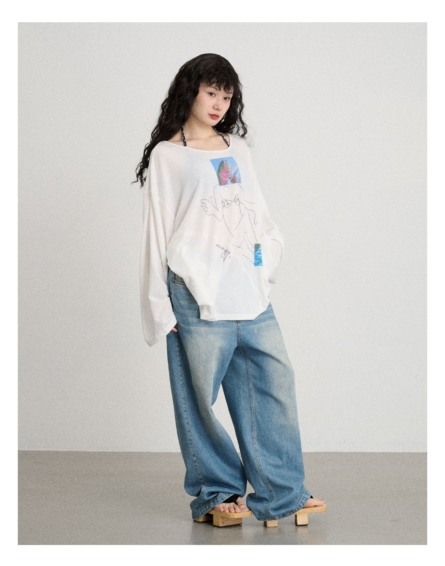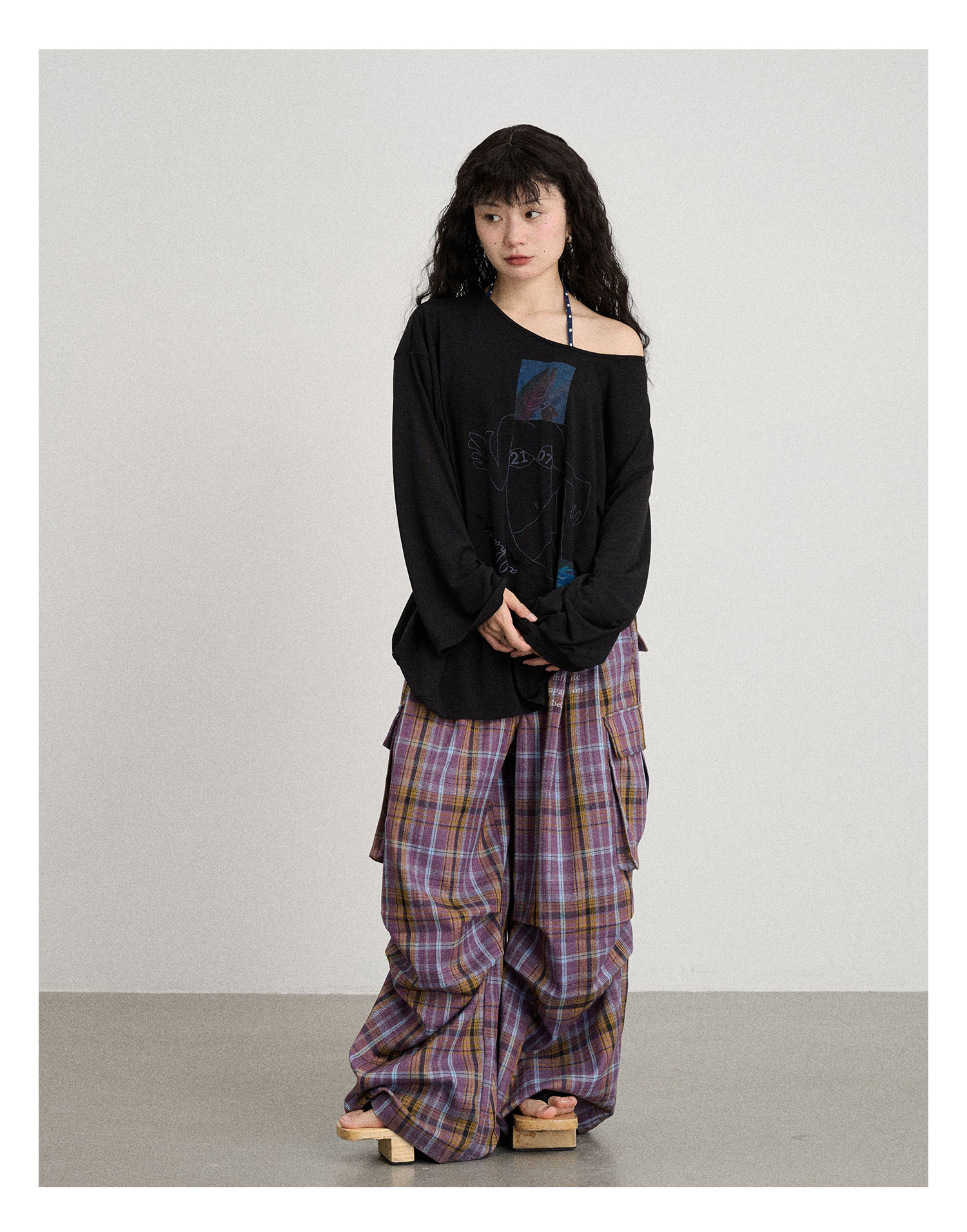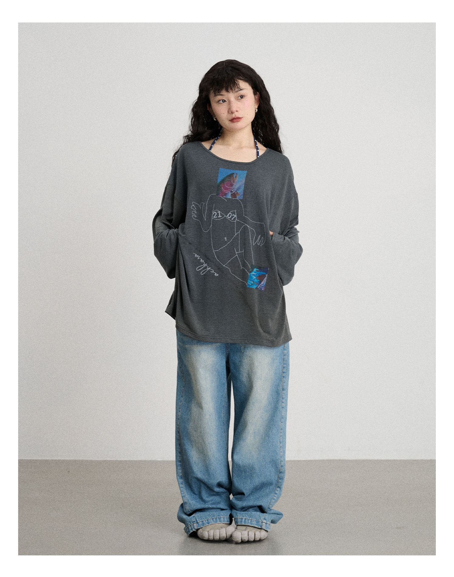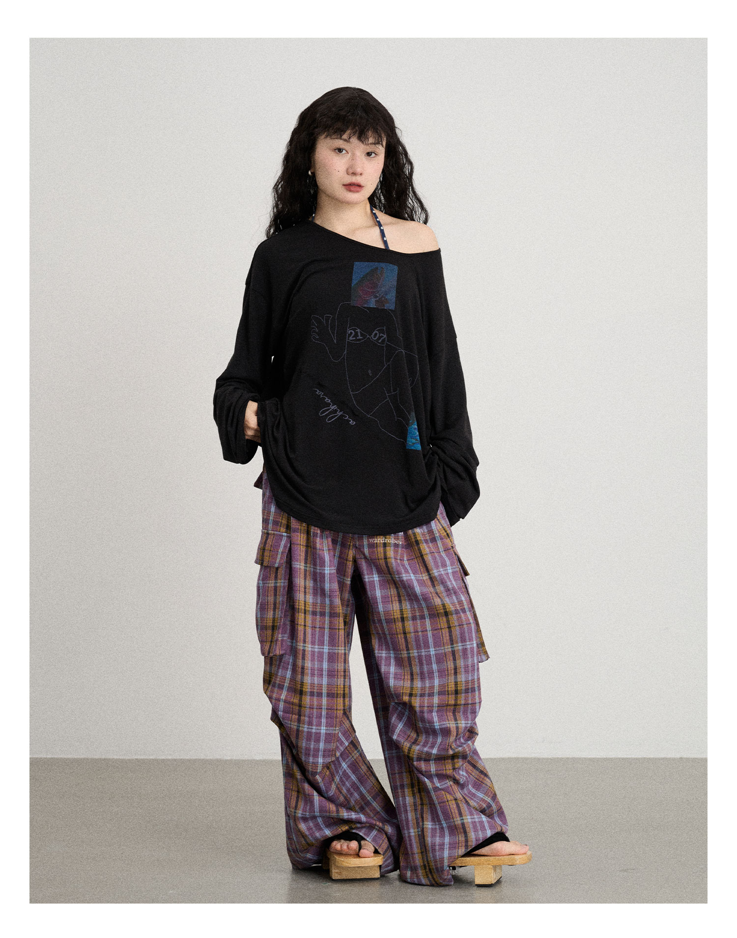 Fish Asymmetric Collar Loose Long-Sleeved T-Shirt
