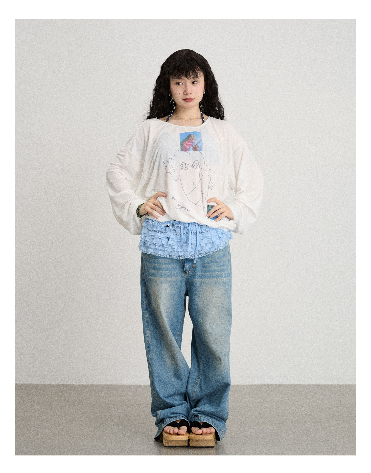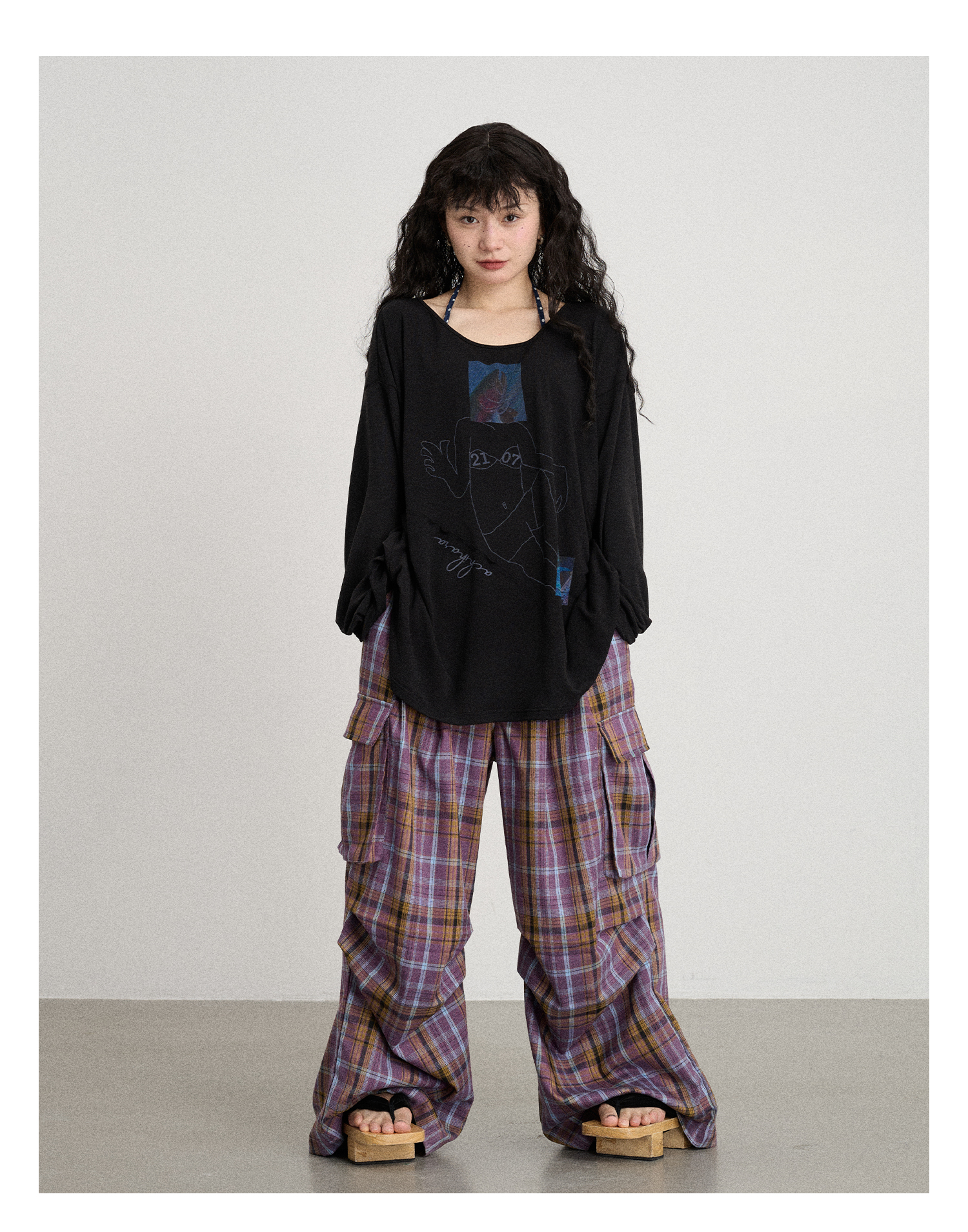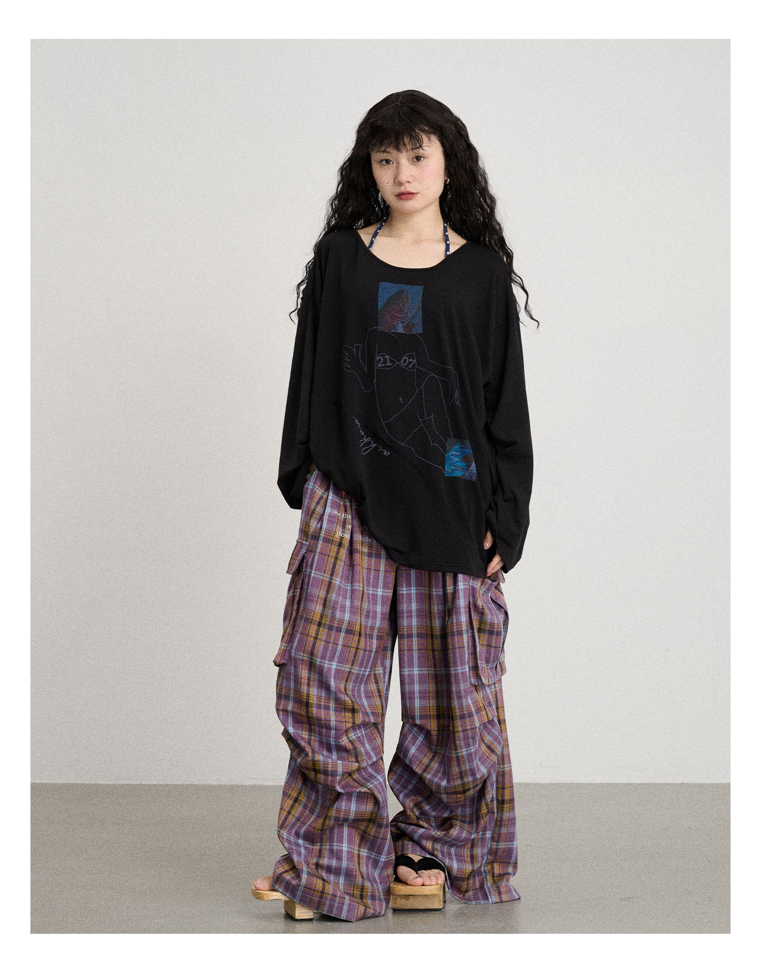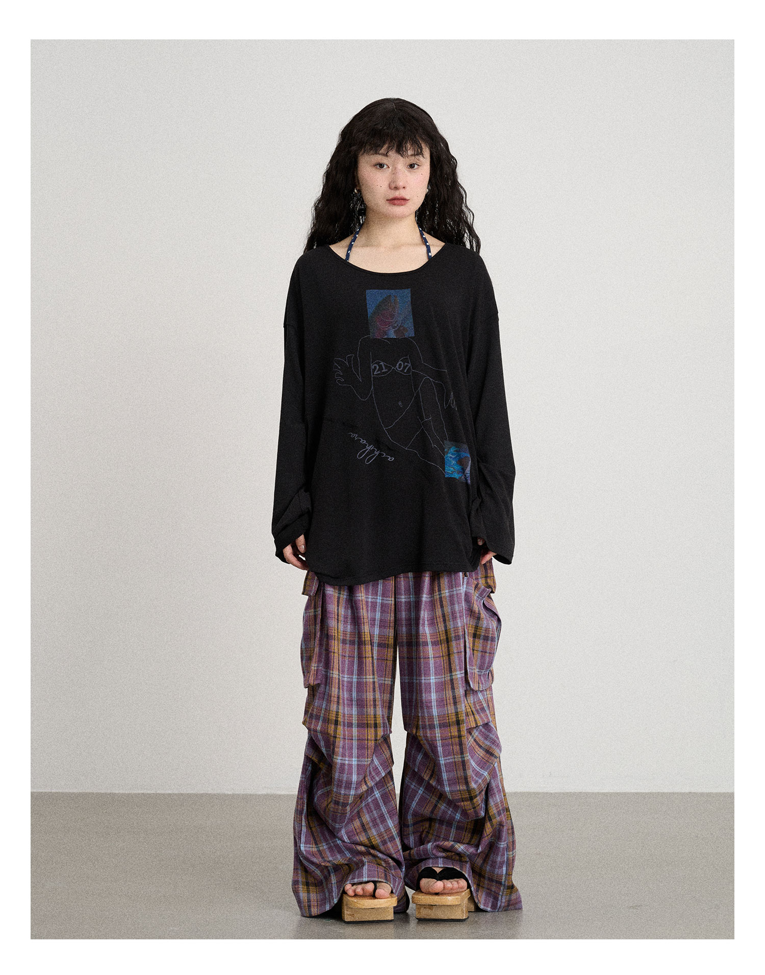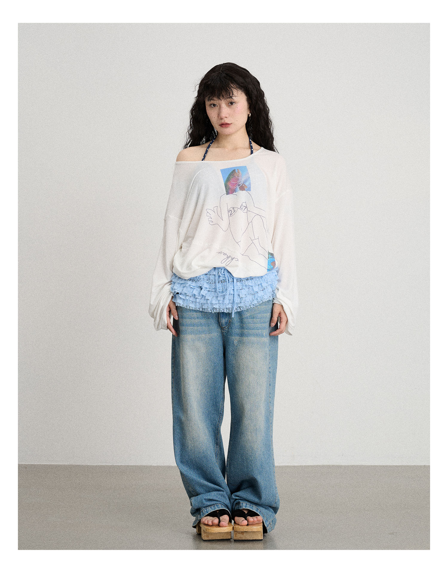 Fish Asymmetric Collar Loose Long-Sleeved T-Shirt