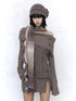 Backless Off Shoulder Wool Knit Ripped Long Sleeve Women Pullover Sweater