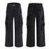 Washed distressed cargo pants in cotton-blend fabric. Deconstructed three-dimensional large patch pockets with leather trim and metal hardware; multiple pockets for storage; decorative straps and pendants; loose fit with elastic waistband for comfort.