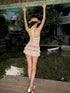 Deep V Backless Halter Tiered Mini Dress Dresses