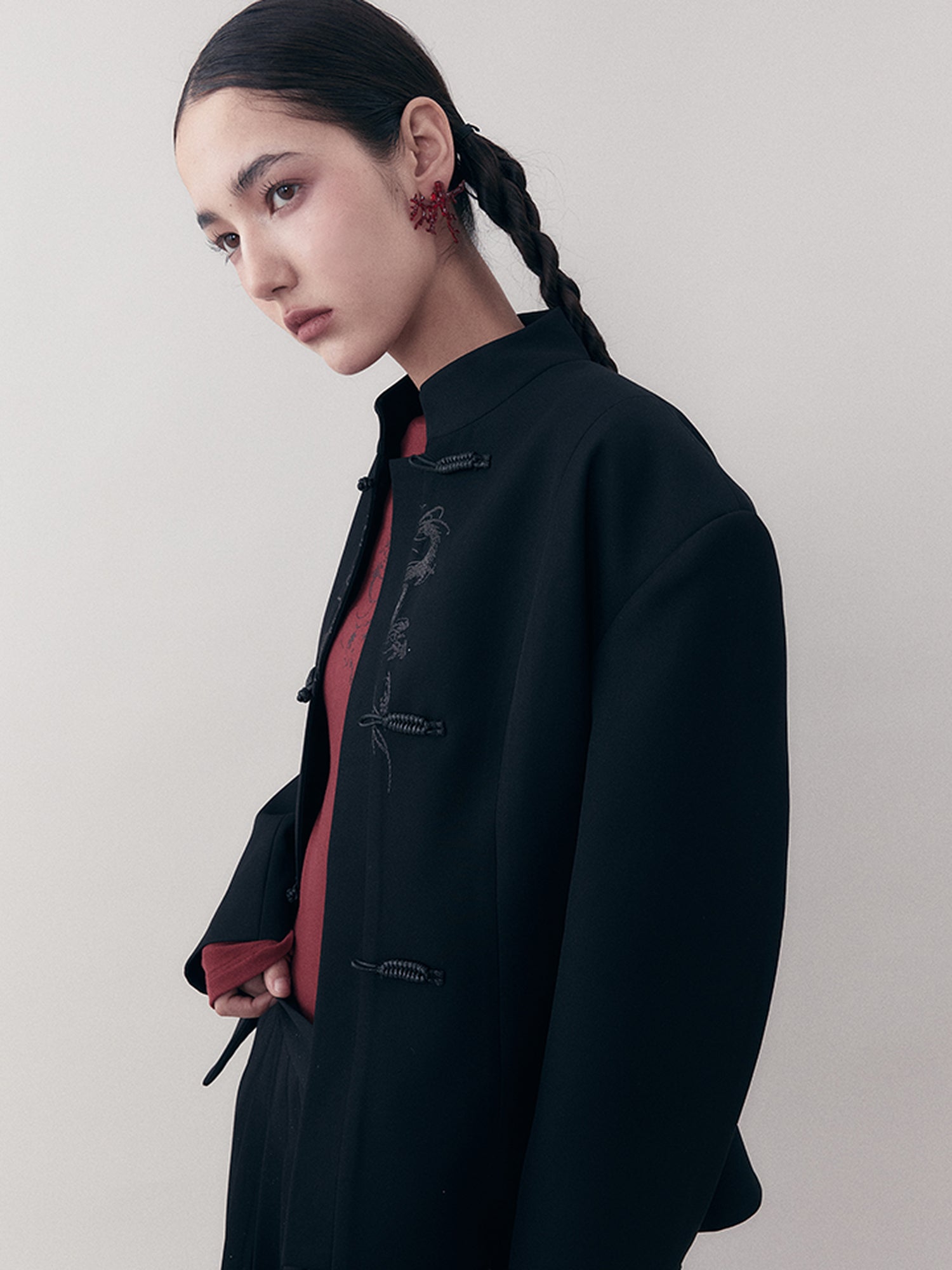 {"id":10052405723438,"title":"Dragon Embroidered Blazer In Ink Wash","handle":"dragon-embroidered-blazer-in-ink-wash","description":"\u003cbody\u003e\n\n\n\u003cmeta charset=\"utf-8\"\u003e\n\u003cmeta name=\"viewport\" content=\"width=device-width, initial-scale=1\"\u003e\n\u003ctitle\u003eSize Sheet\u003c\/title\u003e\n\n \u003cstyle\u003e\n \/* MISSTT styles: scoped, no global selectors *\/\n .misstt-wrap { margin: 0; padding: 0; }\n .misstt-section { margin: 20px 0; }\n .misstt-section-title { font-size: 16px; font-weight: 600; margin: 8px 0; }\n .misstt-table { width: 100%; border-collapse: collapse; }\n .misstt-table th, .misstt-table td { border: 1px solid ; padding: 6px 8px; text-align: left; }\n .misstt-muted { opacity: 0.7; }\n .misstt-list { list-style: disc; margin: 6px 20px; }\n .misstt-list li { margin: 4px 0; }\n .misstt-paragraph { margin: 6px 0; }\n \u003c\/style\u003e\n \n\n\n \u003cdiv class=\"misstt-wrap\"\u003e\n \u003cdiv class=\"misstt-section\"\u003e\n \u003cdiv class=\"misstt-section-title\"\u003eModel Info\u003c\/div\u003e\n \u003cul class=\"misstt-list\"\u003e\n\u003cli\u003eHeight: 172 cm (67.7 inch)\u003c\/li\u003e\n\u003cli\u003eWeight: 48.0kg\u003c\/li\u003e\n\u003cli\u003eBust: 78 cm (30.7 inch)\u003c\/li\u003e\n\u003cli\u003eWaist: 60 cm (23.6 inch)\u003c\/li\u003e\n\u003cli\u003eHips: 89 cm (35.0 inch)\u003c\/li\u003e\n\u003cli\u003eSize tried: M\u003c\/li\u003e\n\u003c\/ul\u003e\n\u003c\/div\u003e\n \u003cdiv class=\"misstt-section\"\u003e\n \u003cdiv class=\"misstt-section-title\"\u003eMaterial Composition\u003c\/div\u003e\n \u003cul class=\"misstt-list\"\u003e\n\u003cli\u003ePolyester 82%\u003c\/li\u003e\n\u003cli\u003eViscose (rayon) 17%\u003c\/li\u003e\n\u003cli\u003eSpandex 1%\u003c\/li\u003e\n\u003cli\u003ePolyester (lining) 100%\u003c\/li\u003e\n\u003c\/ul\u003e\n\u003c\/div\u003e\n \u003cdiv class=\"misstt-section\"\u003e\n \u003cdiv class=\"misstt-section-title\"\u003eCare Instructions\u003c\/div\u003e\n \u003cul class=\"misstt-list\"\u003e\n\u003cli\u003eRecommend dry cleaning.\u003c\/li\u003e\n\u003cli\u003eTurn garment inside out before cleaning and place in a separate laundry bag.\u003c\/li\u003e\n\u003cli\u003eDo not rub vigorously to avoid damage to embroidery and frog buttons.\u003c\/li\u003e\n\u003c\/ul\u003e\n\u003c\/div\u003e\n \u003cdiv class=\"misstt-section\"\u003e\n \u003cdiv class=\"misstt-section-title\"\u003eProduct Details\u003c\/div\u003e\n \u003cp class=\"misstt-paragraph\"\u003eHigh-quality micro-luster twill suit fabric: 82% polyester, 17% viscose, 1% spandex; lining 100% polyester. Features include two-tone silk-like dragon embroidery, modified Chinese-style silhouette with slightly widened shoulders and waist shaping, Chinese stand collar, and handmade wheat-ear style frog buttons using slightly glossy wax cord. Fabric is firm, dense, with added glitter finish for subtle sheen.\u003c\/p\u003e\n\u003c\/div\u003e\n \u003cdiv class=\"misstt-section\"\u003e\n \u003cdiv class=\"misstt-section-title\"\u003eSize Chart\u003c\/div\u003e\n \u003ctable class=\"misstt-table\"\u003e\n \u003cthead\u003e\u003ctr\u003e\n\u003cth data-label=\"Size\"\u003eSize\u003c\/th\u003e\n\u003cth data-label=\"Bust\"\u003eBust\u003c\/th\u003e\n\u003cth data-label=\"Waist\"\u003eWaist\u003c\/th\u003e\n\u003cth data-label=\"Clothing Length\"\u003eClothing Length\u003c\/th\u003e\n\u003cth data-label=\"Hem Circumference\"\u003eHem Circumference\u003c\/th\u003e\n\u003cth data-label=\"Shoulder Width\"\u003eShoulder Width\u003c\/th\u003e\n\u003c\/tr\u003e\u003c\/thead\u003e\n \u003ctbody\u003e\n\u003ctr\u003e\n\u003ctd\u003eXS\u003c\/td\u003e\n\u003ctd class=\"misstt-muted\"\u003e—\u003c\/td\u003e\n\u003ctd class=\"misstt-muted\"\u003e—\u003c\/td\u003e\n\u003ctd class=\"misstt-muted\"\u003e—\u003c\/td\u003e\n\u003ctd class=\"misstt-muted\"\u003e—\u003c\/td\u003e\n\u003ctd class=\"misstt-muted\"\u003e—\u003c\/td\u003e\n\u003c\/tr\u003e\n\u003ctr\u003e\n\u003ctd\u003eS\u003c\/td\u003e\n\u003ctd\u003e94.0 cm (37.0 inch)\u003c\/td\u003e\n\u003ctd\u003e76.0 cm (29.9 inch)\u003c\/td\u003e\n\u003ctd\u003e61.0 cm (24.0 inch)\u003c\/td\u003e\n\u003ctd class=\"misstt-muted\"\u003e—\u003c\/td\u003e\n\u003ctd\u003e47.0 cm (18.5 inch)\u003c\/td\u003e\n\u003c\/tr\u003e\n\u003ctr\u003e\n\u003ctd\u003eM\u003c\/td\u003e\n\u003ctd\u003e98.0 cm (38.6 inch)\u003c\/td\u003e\n\u003ctd\u003e80.0 cm (31.5 inch)\u003c\/td\u003e\n\u003ctd\u003e62.5 cm (24.6 inch)\u003c\/td\u003e\n\u003ctd\u003e48.0 cm (18.9 inch)\u003c\/td\u003e\n\u003ctd class=\"misstt-muted\"\u003e—\u003c\/td\u003e\n\u003c\/tr\u003e\n\u003ctr\u003e\n\u003ctd\u003eL\u003c\/td\u003e\n\u003ctd\u003e102.0 cm (40.2 inch)\u003c\/td\u003e\n\u003ctd\u003e84.0 cm (33.1 inch)\u003c\/td\u003e\n\u003ctd\u003e64.0 cm (25.2 inch)\u003c\/td\u003e\n\u003ctd\u003e49.0 cm (19.3 inch)\u003c\/td\u003e\n\u003ctd class=\"misstt-muted\"\u003e—\u003c\/td\u003e\n\u003c\/tr\u003e\n\u003c\/tbody\u003e\n \u003c\/table\u003e\n\u003c\/div\u003e\n \u003cdiv class=\"misstt-section\"\u003e\n \u003cdiv class=\"misstt-section-title\"\u003eTry-on Reviews\u003c\/div\u003e\n \u003ctable class=\"misstt-table\"\u003e\n \u003cthead\u003e\u003ctr\u003e\n\u003cth\u003eName\u003c\/th\u003e\n\u003cth\u003eHeight\u003c\/th\u003e\n\u003cth\u003eWeight\u003c\/th\u003e\n\u003cth\u003eBust\u003c\/th\u003e\n\u003cth\u003eWaist\u003c\/th\u003e\n\u003cth\u003eHips\u003c\/th\u003e\n\u003cth\u003eSize Tried\u003c\/th\u003e\n\u003cth\u003eFeel\u003c\/th\u003e\n\u003c\/tr\u003e\u003c\/thead\u003e\n \u003ctbody\u003e\u003ctr\u003e\n\u003ctd\u003eSayiba\u003c\/td\u003e\n\u003ctd\u003e172 cm (67.7 inch)\u003c\/td\u003e\n\u003ctd\u003e48.0kg\u003c\/td\u003e\n\u003ctd\u003e78 cm (30.7 inch)\u003c\/td\u003e\n\u003ctd\u003e60 cm (23.6 inch)\u003c\/td\u003e\n\u003ctd\u003e89 cm (35.0 inch)\u003c\/td\u003e\n\u003ctd\u003eM\u003c\/td\u003e\n\u003ctd class=\"misstt-muted\"\u003e—\u003c\/td\u003e\n\u003c\/tr\u003e\u003c\/tbody\u003e\n \u003c\/table\u003e\n\u003c\/