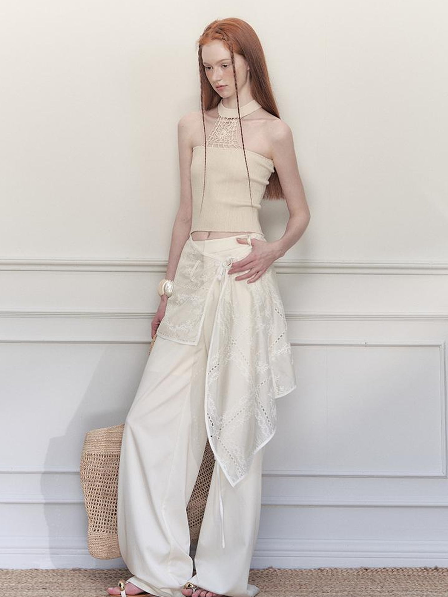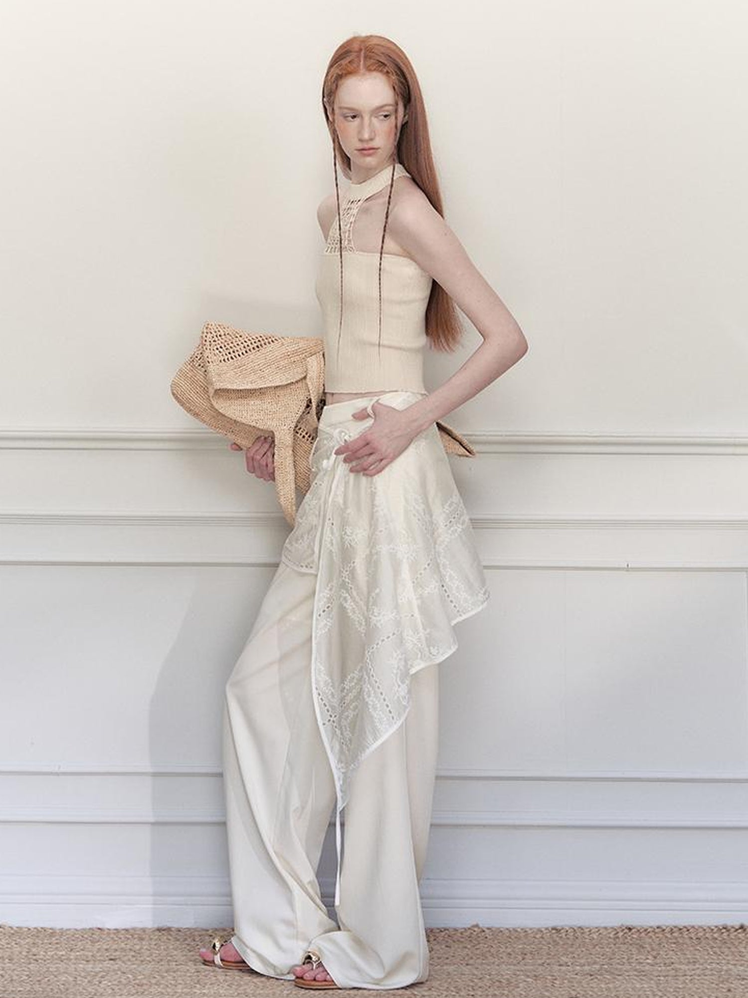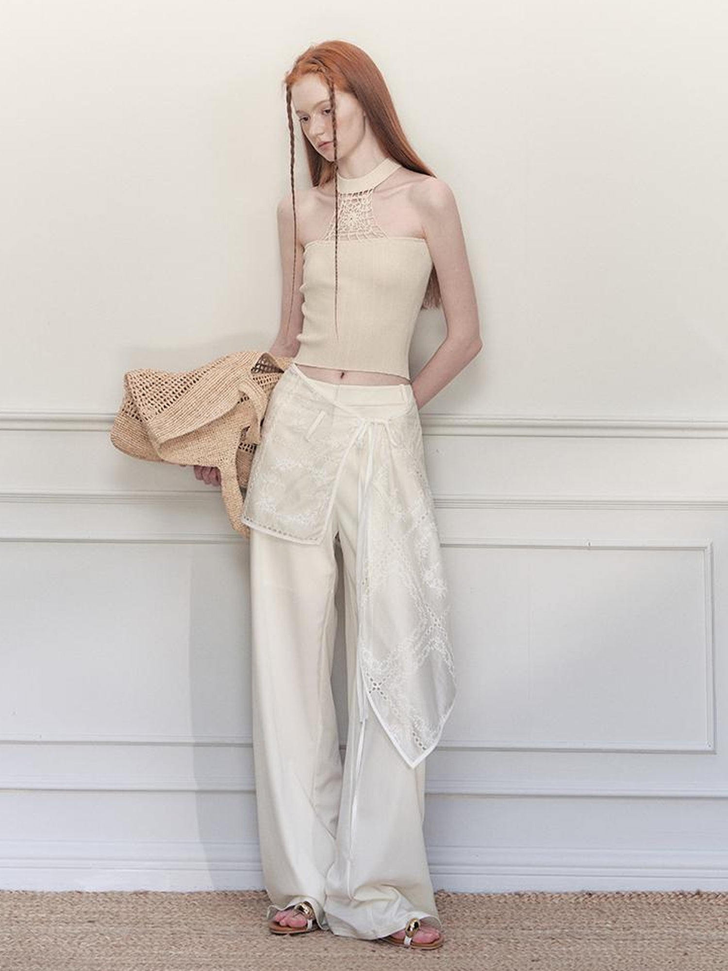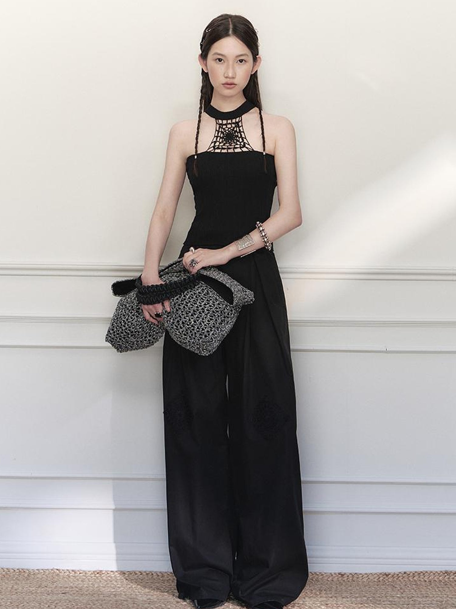 Crochet hanging neck vest, made of blended linen yarn ratio (58% acrylic/27% viscose/15% linen), with wear-resistant, breathable fabric and silky feel. The design highlights include handmade crochet neckline, round neck hanging neck design, and a fitted vest silhouette, which combines decoration and conforms to the lines. It can be worn alone or as an inner layer in summer.