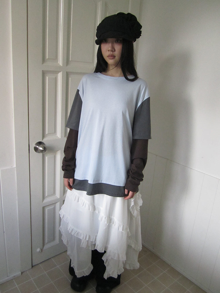 Japanese Style Color Block Drop Shoulder Long Sleeve T-shirt