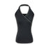 Halter, slim-fit design. Neckline uses rib tape (cotton/spandex blend). Note: sample for model shoot was lengthened by approximately 3–5 cm.