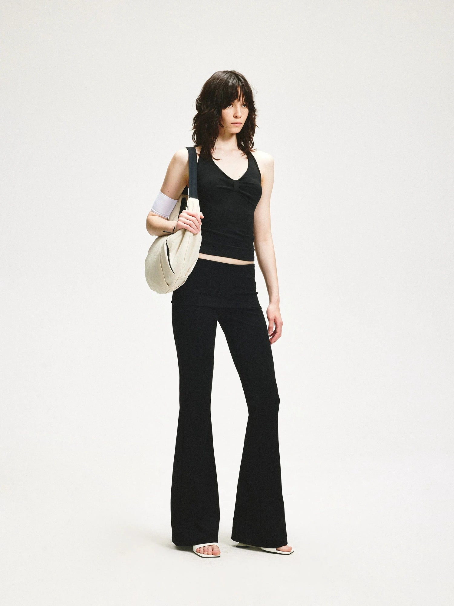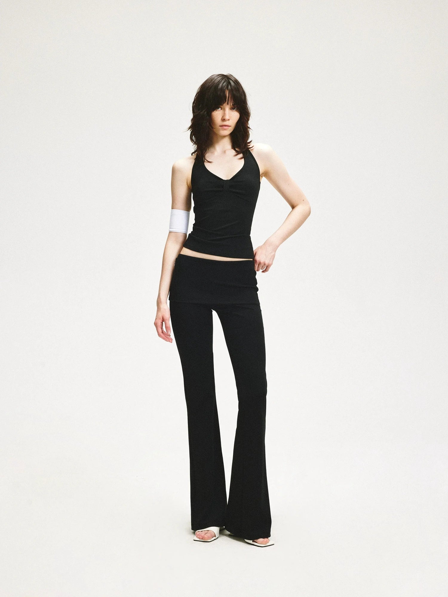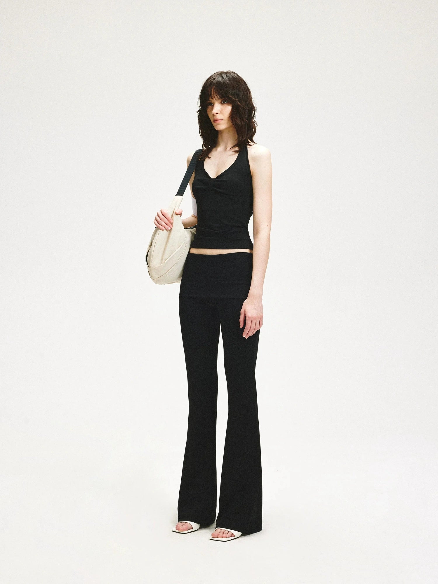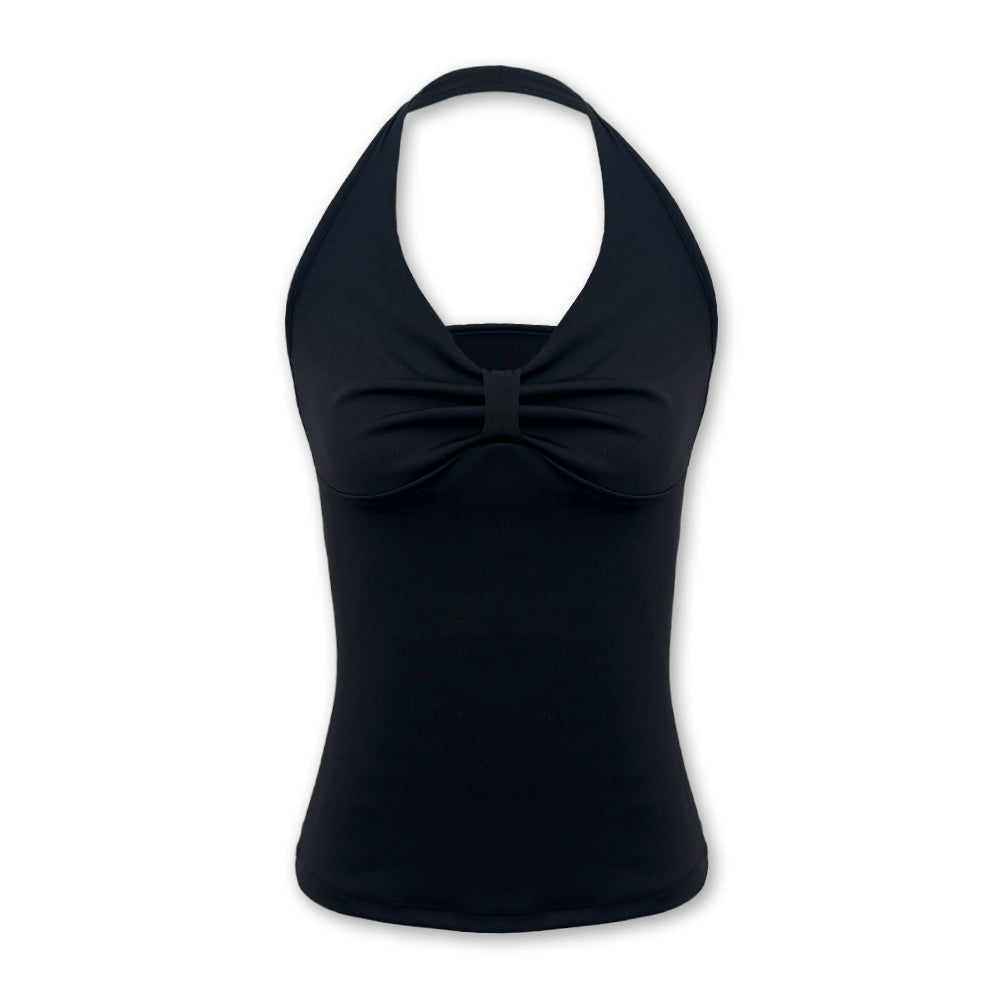 The fabric is a high elasticity blend of cotton, polyester fiber, and spandex, which is moisture absorbing, breathable, wear-resistant, wrinkle resistant, and has good recovery, making it more comfortable and snug to wear. The design is a neck hanging slimming style, elongating the neck and shoulder lines, providing ample room for movement, suitable for yoga, dance and other sports scenes, and adding a fashionable touch to the chest buckle.
