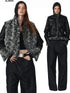 Reversible short jacket with snap-front placket and multiple pockets. Clean, tailored fit. Eco-fur lining with soft, plush handfeel. Two looks: PU faux-leather with natural sheen and structure; denim version with silver thread for a retro cool vibe. Suitable for both petite and tall figures.
