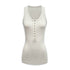 Slim-fit deep U-neck design with front placket. Note: for model shoot, garment length was extended by 3–5 cm. Manual measurement may have 2–3 cm variance; actual product prevails.