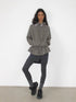 UPF50+ lightweight, breathable sun-protection jacket with subtle check texture. Features antibacterial treatment with a silver-ion layer, hem drawcord that can create a skirt-like silhouette, matte hardware, reflective cord detailing for an outdoor touch, ruffled brim echoing hem gathers, and a relaxed, comfortable fit.